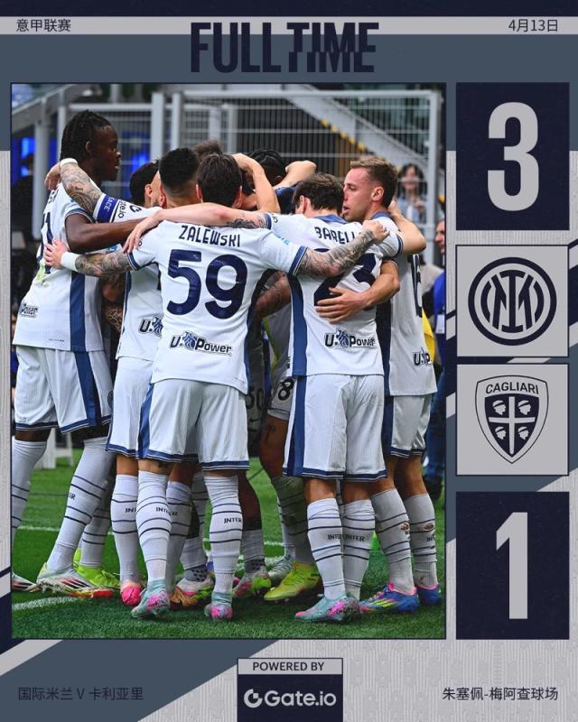 全场比赛结束,最终国米3比1战胜卡利亚里,拿下3分,先赛一场领先那不勒斯6分!